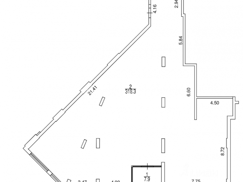 Свободная планировка. Отдельный вход. Наличие вытяжки. Потолки - 5,45 метра.