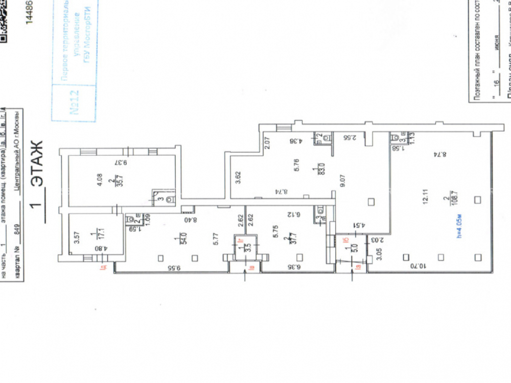 Технические характеристики помещения: 1-й этаж 9-ти этажного жилого дома. Общая площадь - 363.9 кв.м. (в одном уровне).