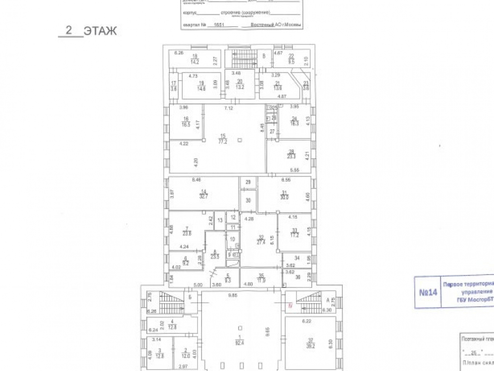 Общая площадь - 1974,5 кв.м. (подвал - 605,7 кв.м.; 1-й этаж - 663,6 кв.м.; 2-й этаж - 645,9 кв.м.; тех.этаж - 59,3 кв.м.). Центральные коммуникации; железобетонные перекрытия; смешанная планировка; высота потолков 3,7 м на 1 и 2 этажах, 2,85 м в подвале;
