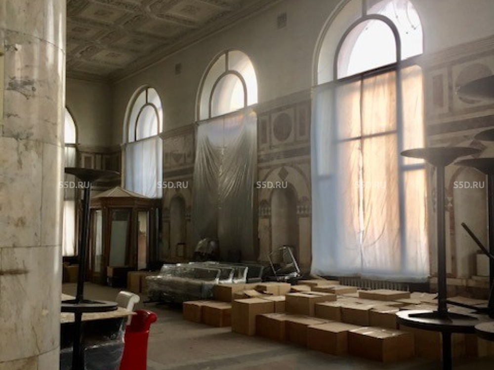 Помещение с огромными витринами, высокими семиметровыми потолками, а также несколькими отдельными входами.