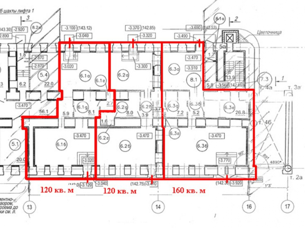 Технические характеристики: 404.8м2 общая площадь, первый этаж 5и этажного дома. Дом только после капитального ремонта (бетонные перекрытия, новые коммуникации, современные инженерные системы и т.д.), высота потолка - 3,4 м.