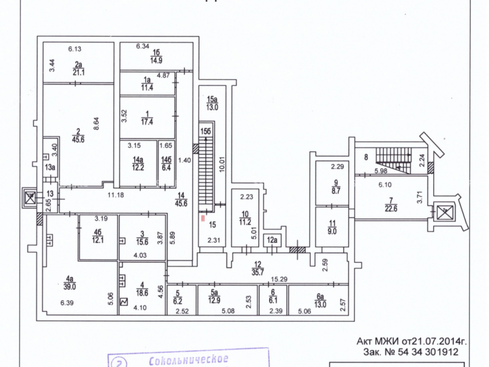 Общая площадь: 1158 кв. м, из них: на 1 этаже - 615 кв. м, подвал - 440,3 кв. м, 2 этаж - 82,5 кв. м.