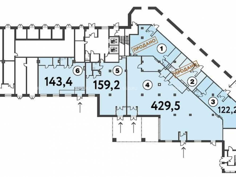 Общая площадь помещения - 159,2 кв.м. ,отдельный вход с первой линии, открытая планировка, витринное остекление, эл.мощность 23,6 кВт, центральные коммуникации, парковка (въезд через переулки ЖК). Состояние помещения Shell & Core. Возможно объединение с соседними помещениями (см. планировку). В помещении предусмотрен выход в зону ресепшн Бизнес-центра.